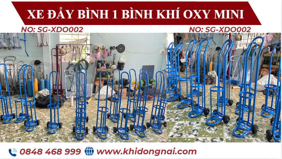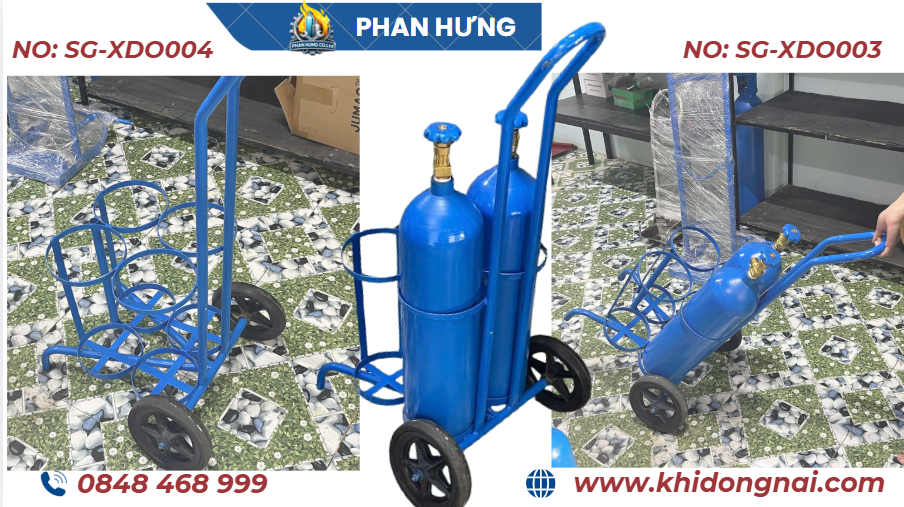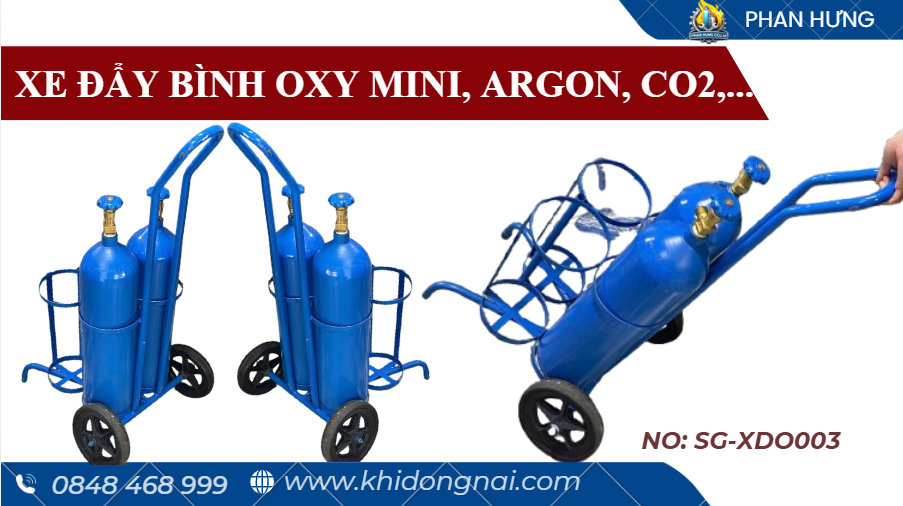 Hiện nay, các dòng xe đẩy bình khí mini 1 bình, 2 bình và 4 bình được sử dụng phổ biến nhờ thiết kế chắc chắn, dễ di chuyển và phù hợp nhiều loại bình khí khác nhau.